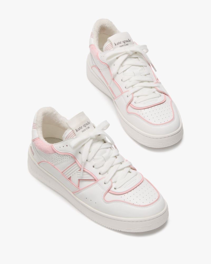 Kate Spade,93 Kicks Sneakers,Leather,Casual,Fabric,Piping,Logo,Perforated,Color Block,Mixed Media,Cushioned,Casual,White