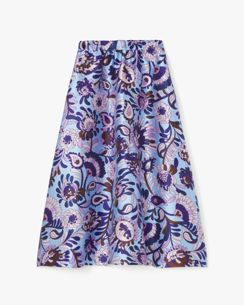 Add a bold pop of color to your look with this elegant midi skirt—it's made from our Autumn Paisley print brocade.