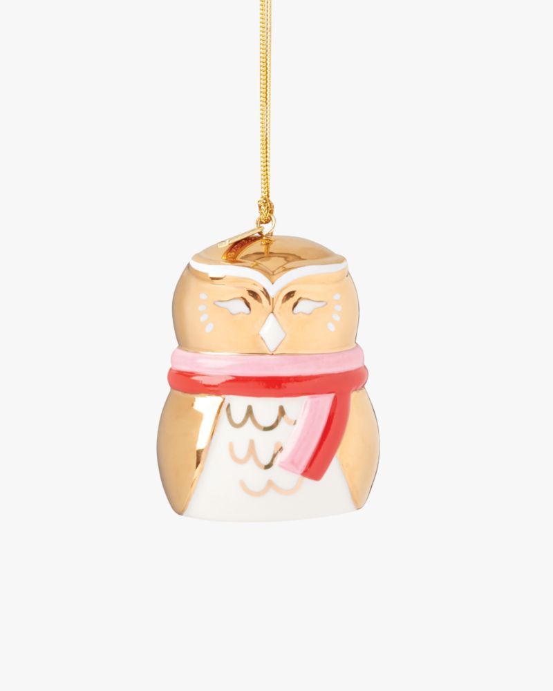 Kate Spade,Be Jolly Owl Ornament,Tree Ornament,Glass,Gold Embellishment,Multi Color