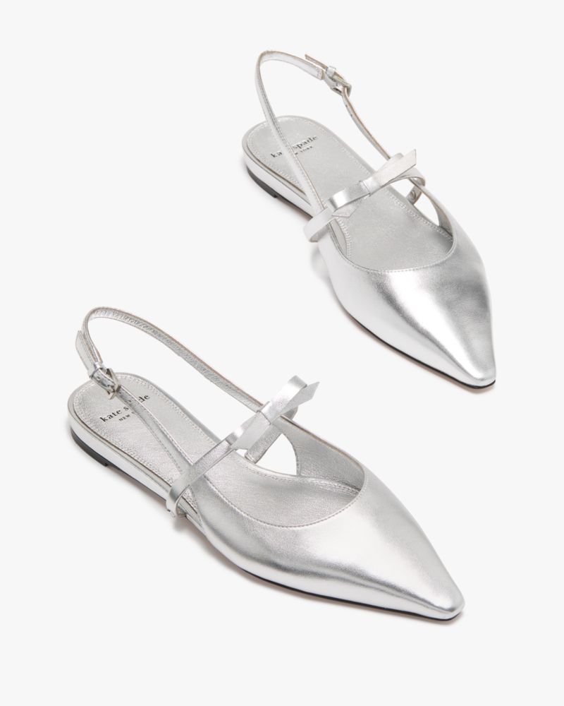 Kate Spade,Carolina Slingback Flats,Rubber,Leather,Flats,Bow,Shoe Straps,Elastic Gore,Day Party,Metallic