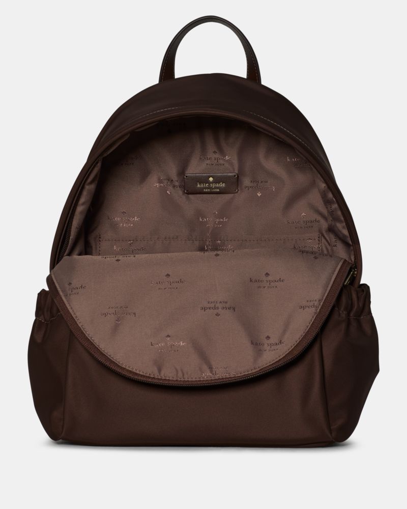 Kate Spade,Carter Nylon Dome Backpack,Backpack,Logo,Sustainable,Gold Metal,Casual,Brown