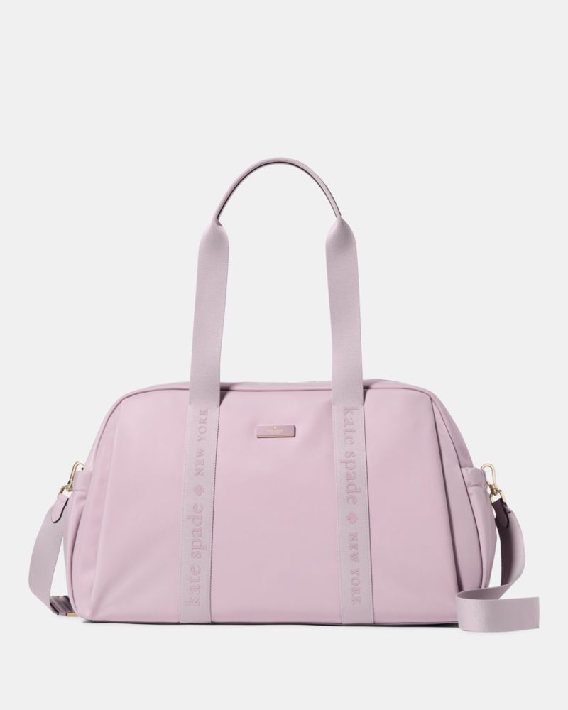 Kate Spade,Carter Nylon Large Weekender,Polyester,Nylon,Weekender,Logo,Stripe,Lavender