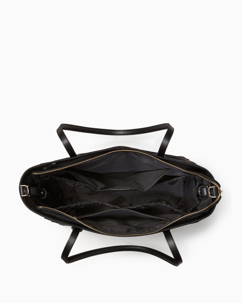 - Interior zip pocket, interior back slip pocket, interior front slip pocket, interior removable changing pads