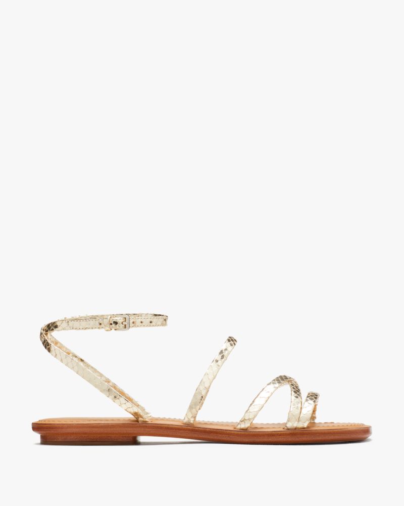 A pair of strappy sandals—like this one made from metallic faux snakeskin—is a chic must-have for sunny days.