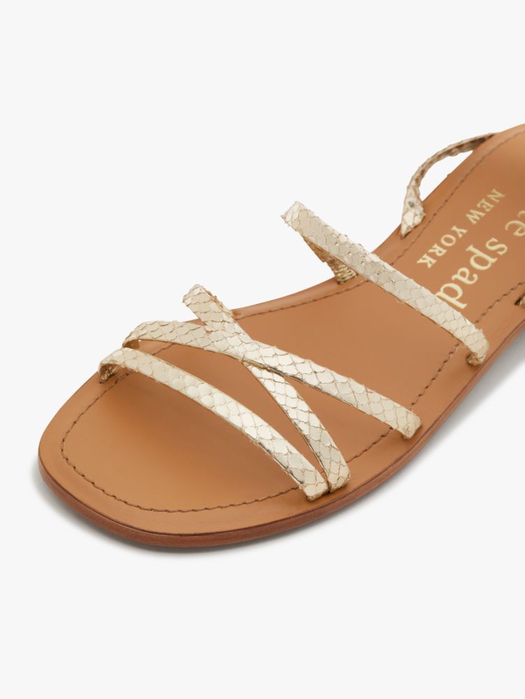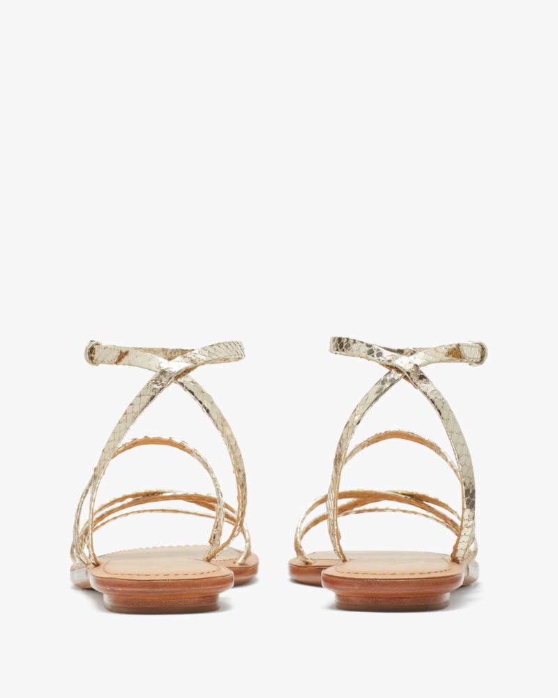 A pair of strappy sandals—like this one made from metallic faux snakeskin—is a chic must-have for sunny days.