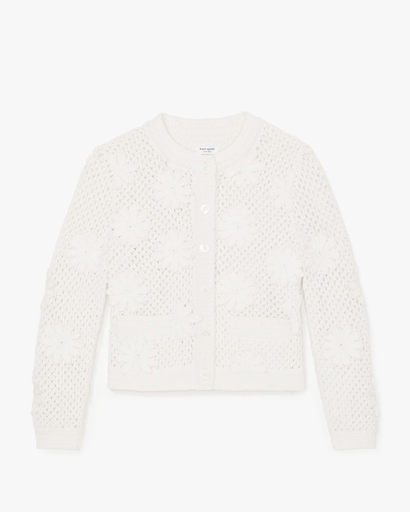 Subtle daisies detail this luxurious cotton crochet cardigan.
