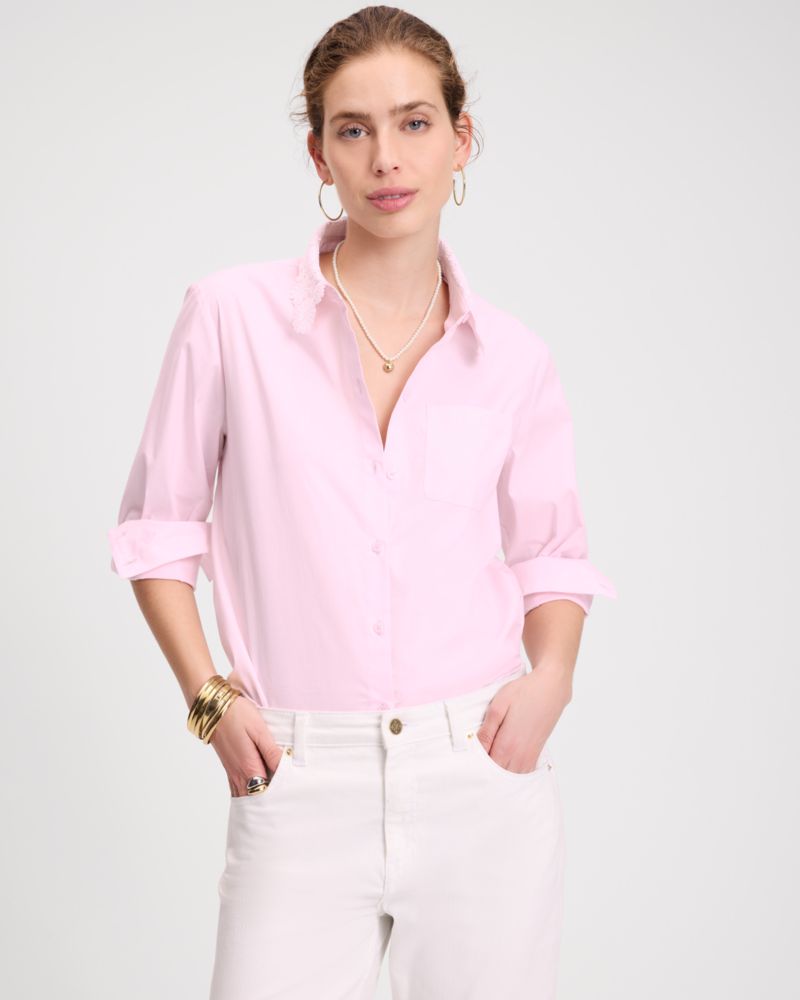 Our classic poplin button-up shirt is updated for spring with a daisy lace collar.