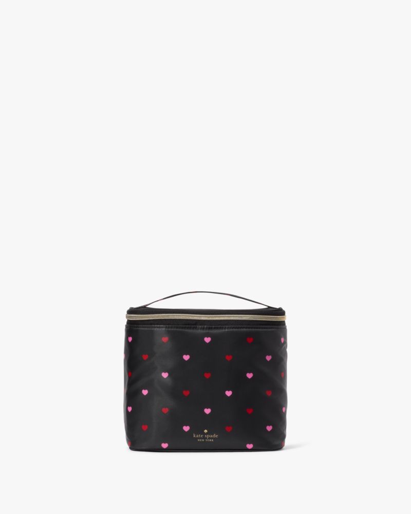 Kate Spade,Darling Hearts Lunch Tote,Polyester,Lunch Box,Metal,Logo,Insulated,Casual,Black