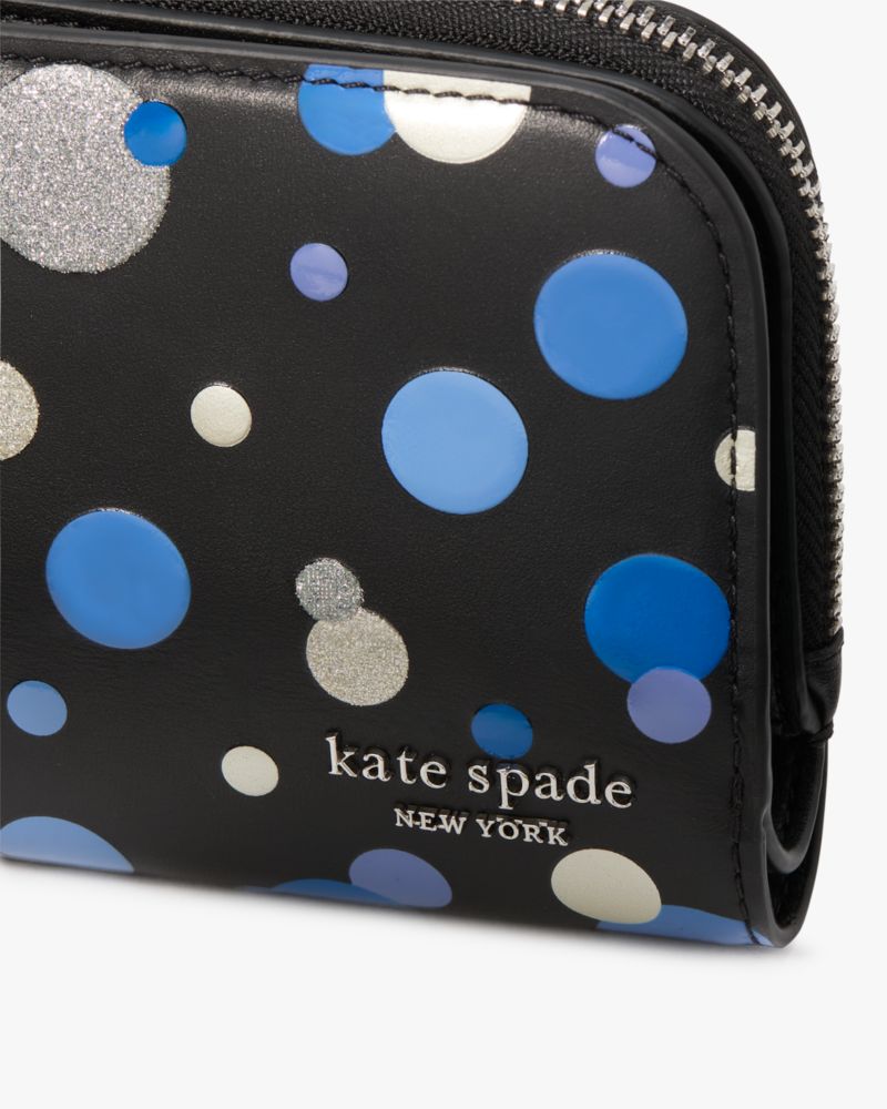 Kate Spade,Devin Space Dot Small Compact Wallet,Leather,Bi Fold,Metal,Logo,Casual,Black