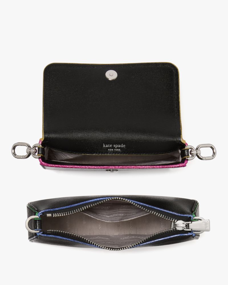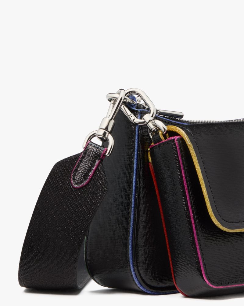 You know what they say...two is better than one. Case in point: our Double Up crossbody. Now adorned with glitter along the edges, it includes an optional pouch that you can wear with the bag (or use on its own).