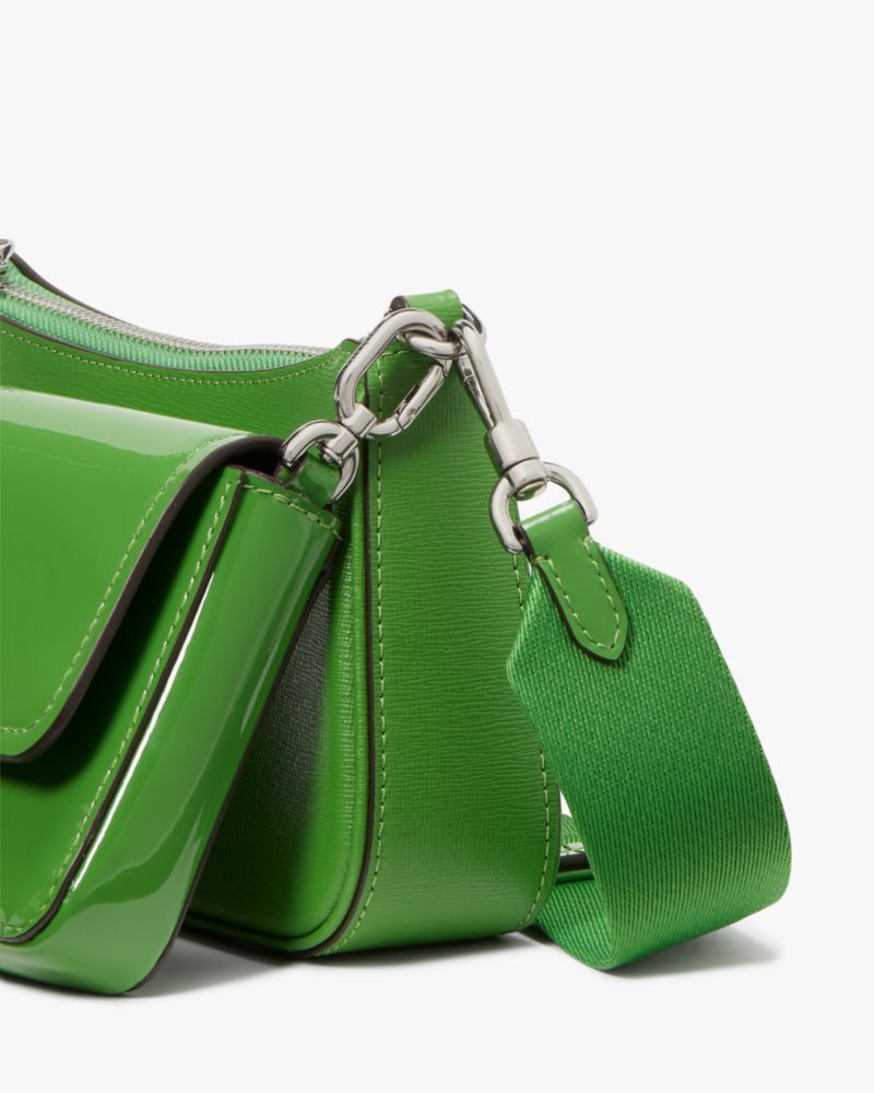 You know what they say...two is better than one. Case in point: our Double Up crossbody in high-gloss patent leather. It includes an optional pouch that you can wear with the bag (or use on its own).