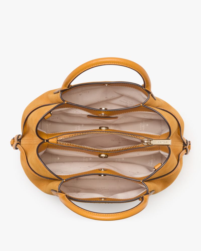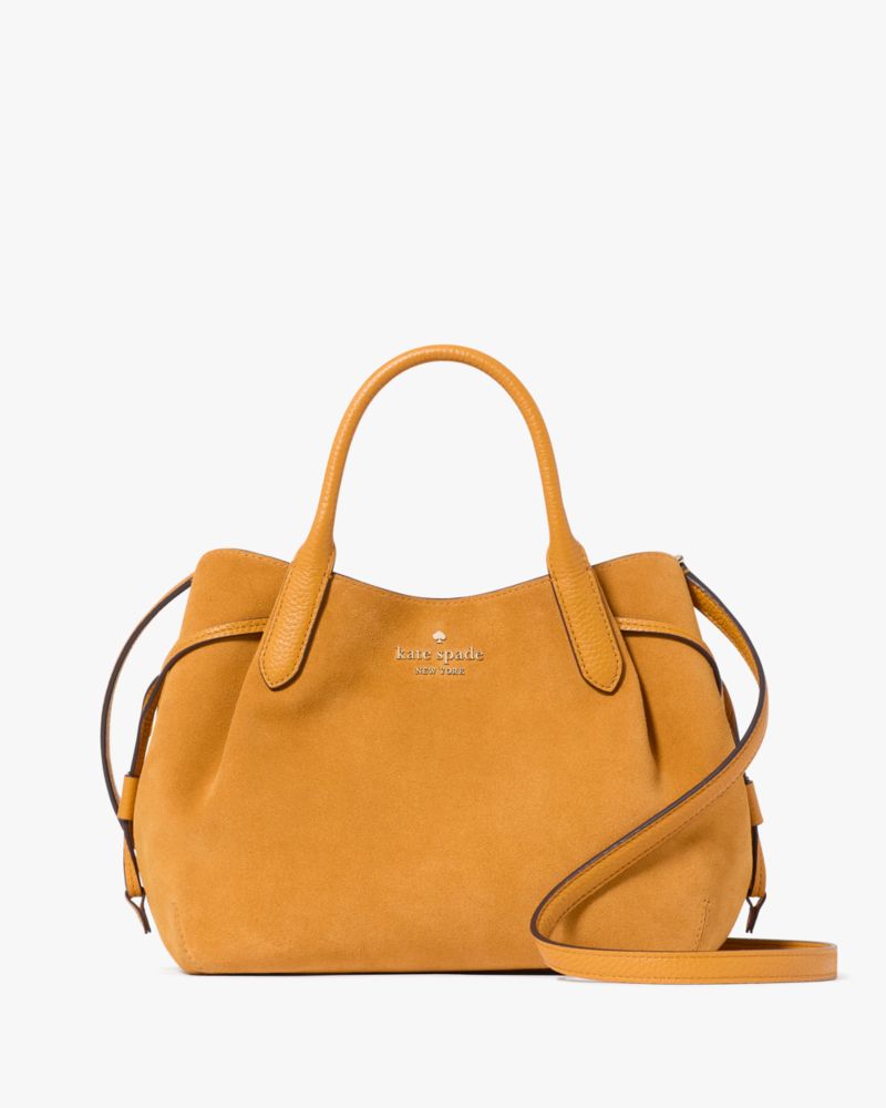Kate Spade,Dumpling Suede Small Satchel,Mixed Media,Suede,Satchel,Casual,Mustard