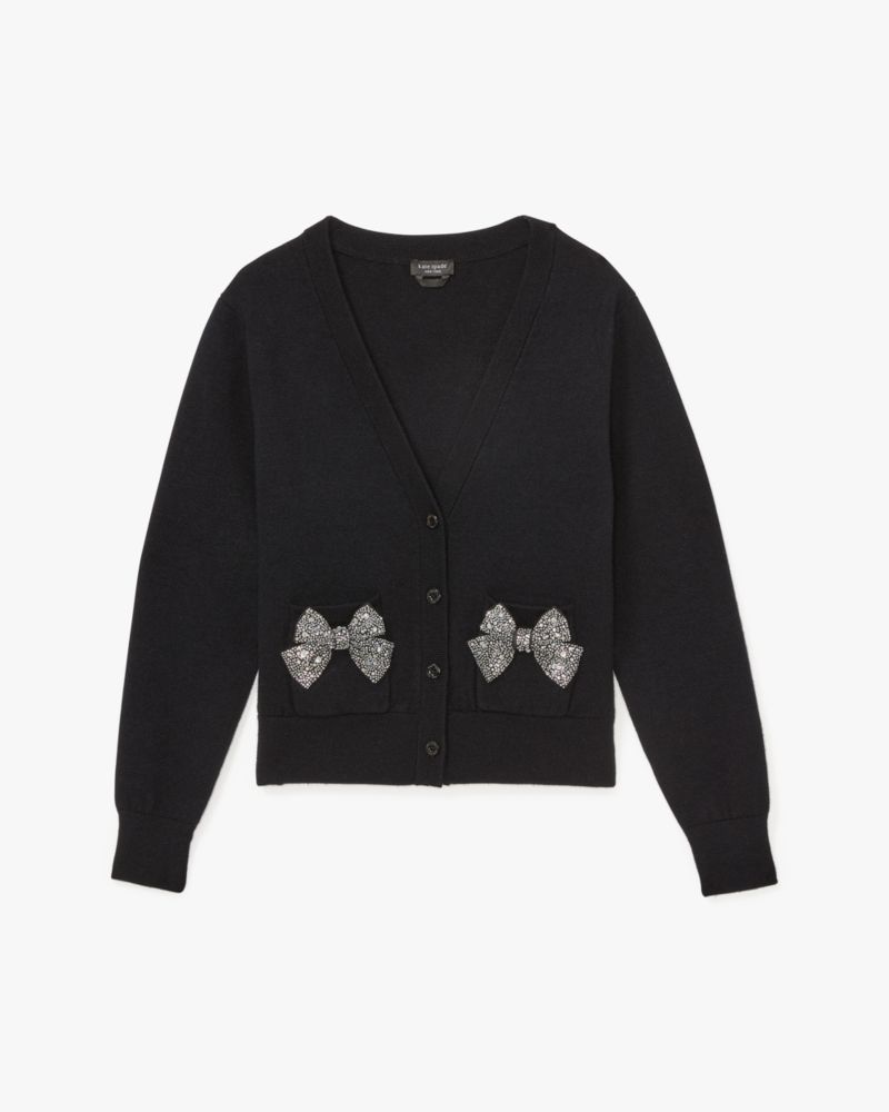 This pretty cardigan is adorned with embellished bows along the front.