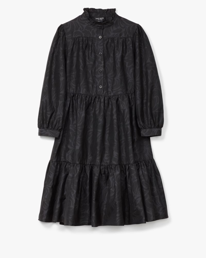 Kate Spade,Flourish Swirl Taffeta Dress,Lining Polyester,Spandex,Taffeta,Polyester,Swing,Shirt Dress,Ruched,Day Party,Black