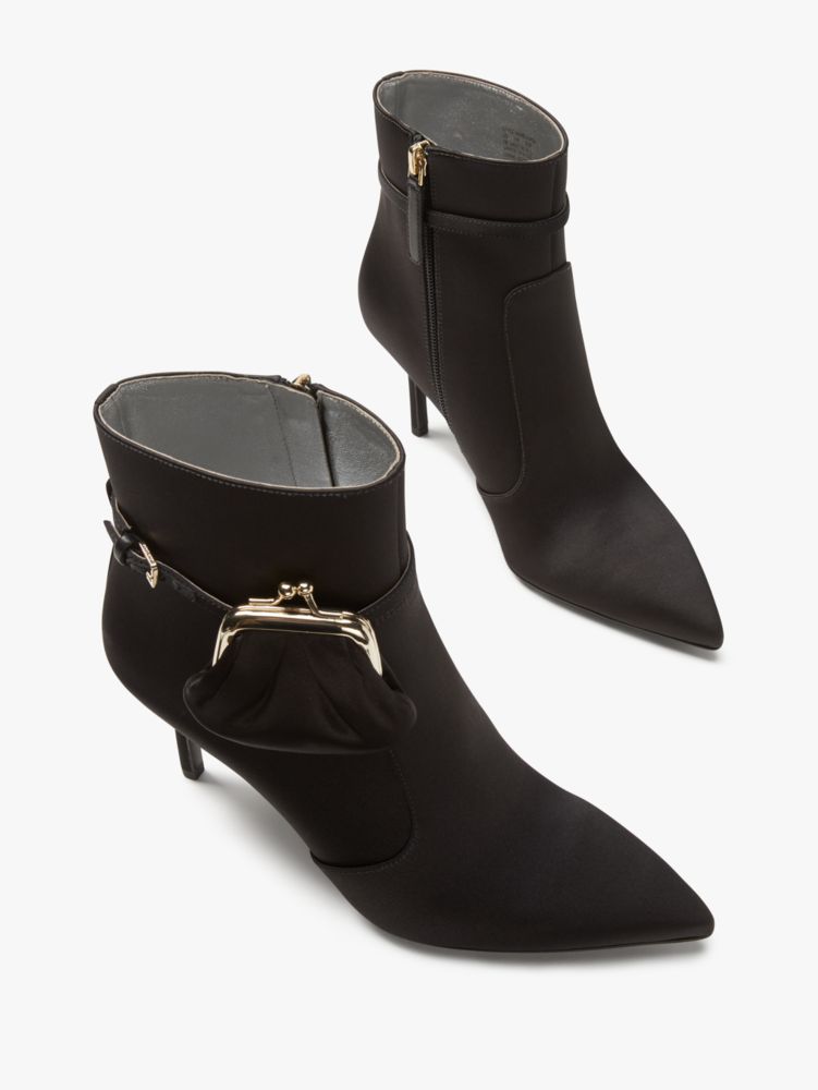 The classic stiletto booties, only more functional: We added a kiss lock pouch at the side for a more original way to stash the essentials (card, cash, and red lipstick, of course...)