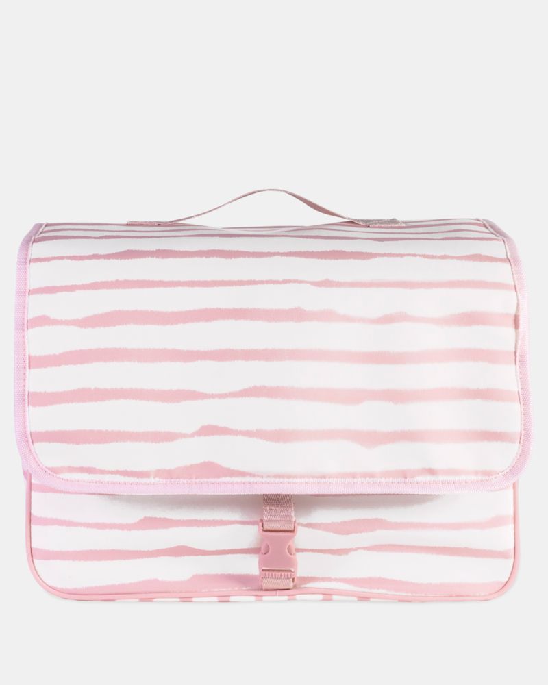 Going somewhere? Keep all your essentials organized & easy to grab in our Goddess Stripe hanging toiletry bag. From gym sessions to weekend escapes, your routine stays beautifully streamlined: two spacious nylon bottom compartments hold your full-size essentials upright, and a striped design with a gold hook means it's is as striking as it is functional.
