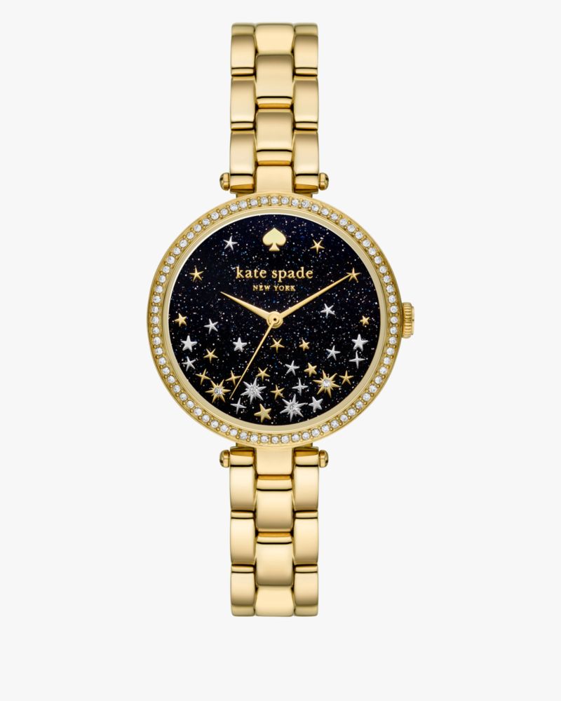 - Gold-tone stainless steel case and bracelet