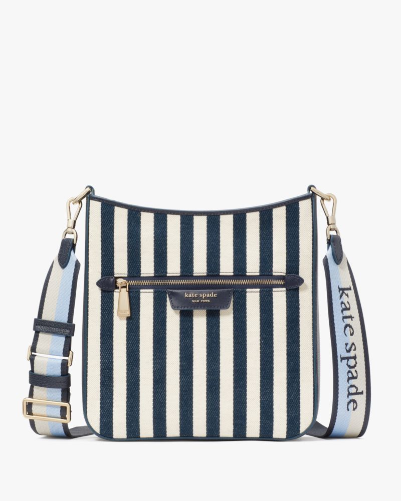 Kate Spade,Hudson Large Messenger Crossbody,Canvas,Crossbody,Metal,Stripe,Color Block,Logo,Casual,Multi Color