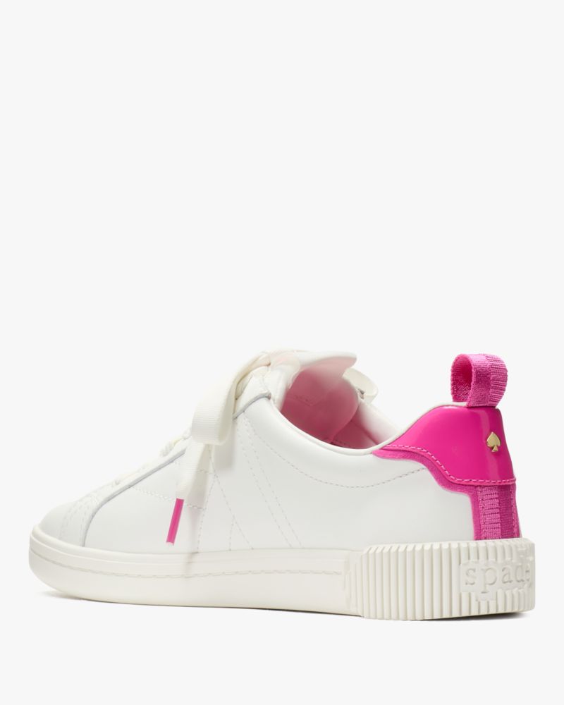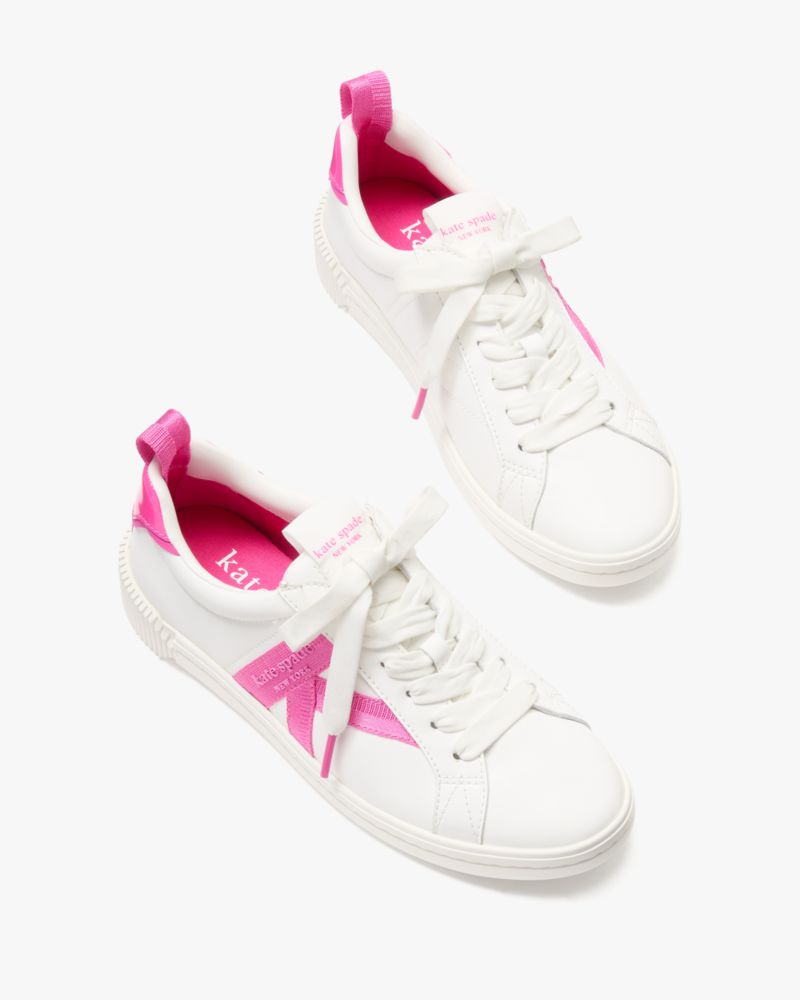 Kate Spade,K As In Kate Court Sneaker,Leather,Rubber,Casual,Fabric,Ribbon,Color Block,Pull Tab,Casual,White