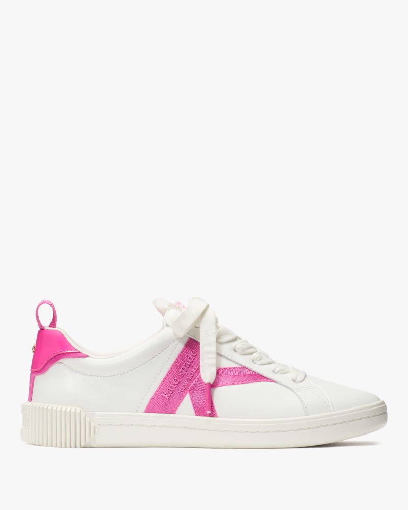 Kate Spade,K As In Kate Court Sneaker,Leather,Rubber,Casual,Fabric,Ribbon,Color Block,Pull Tab,Casual,White