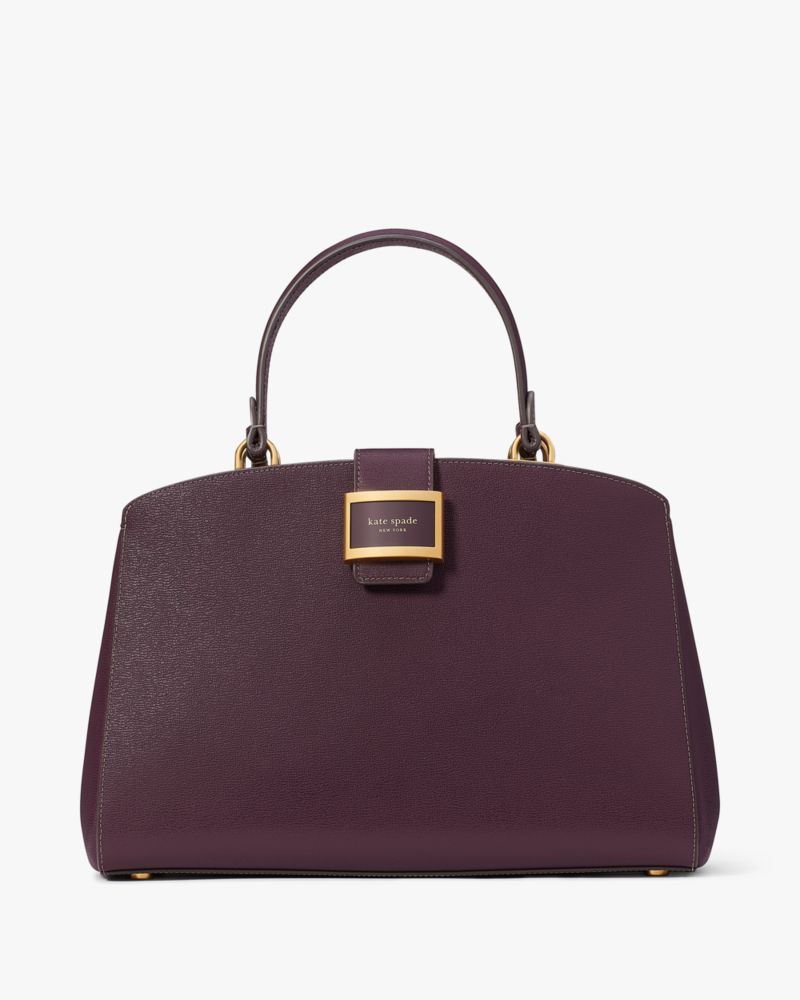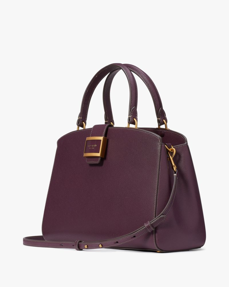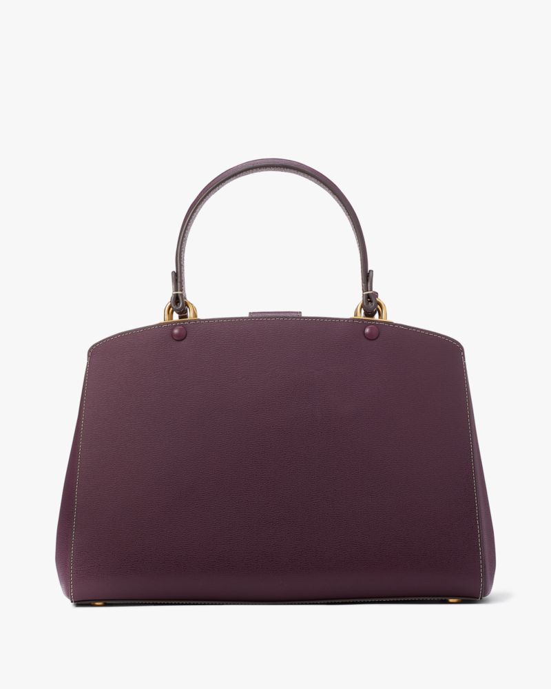 I purchased the black version of this bag. Preferring structured design, I adore this bag as it has zero "floppiness". The walls are super sturdy. It has a mid-section that is wide at the bottom with a narrow zipped opening at the top, which takes a bit of getting used to, but is perfectly fine if you know this in advance. I place bulkier items like sunglasses case in the center section, and have a slim Morgan wallet that fits in the side section. The leather is absolutely gorgeous, to say nothing of the buckle which provides elegance. It is very robust, does not scratch or scuff. I intend to keep this purse for a very long time. It's perfect for most occasions, neither too small nor too big and is beautifully elegant without pretense.