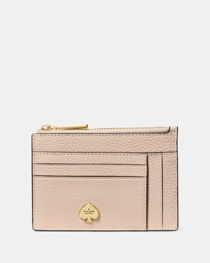 Kate Spade,Kayla Large Slim Cardholder,Calfskin Leather,Coin,Card Case,Metal,Logo,Casual,Beige