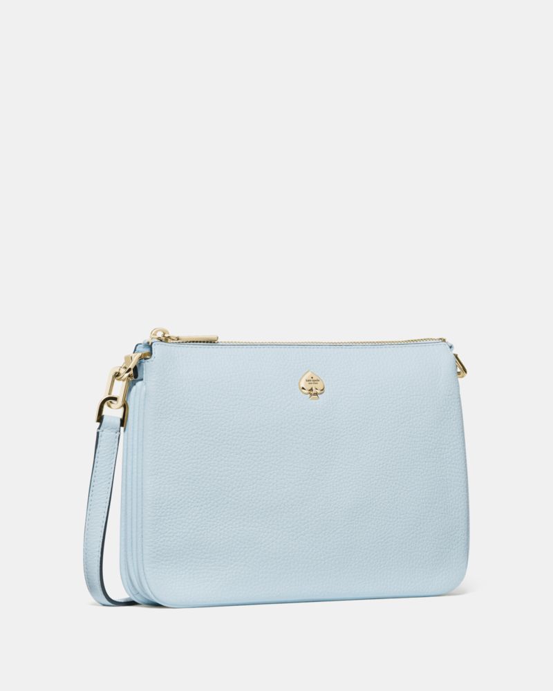 Kate Spade,Kayla Small Triple Compartment Crossbody,Calfskin Leather,Crossbody,Logo, Metal, Gold Embellishment,Water Repel...,Blue