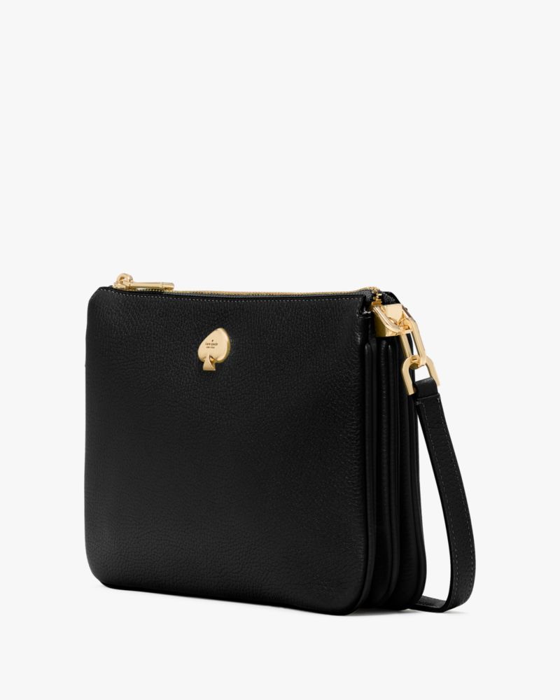 The Kayla crossbody bag streamlines your day with a rounded silhouette and triple interior compartments, so you can stay organized from morning brunch to evenings out. An adjustable strap fits comfortably, and the magnetic front pocket keeps your phone within reach. Gold hardware accents and soft pebbled leather add a polished finish to our small crossbody bag.