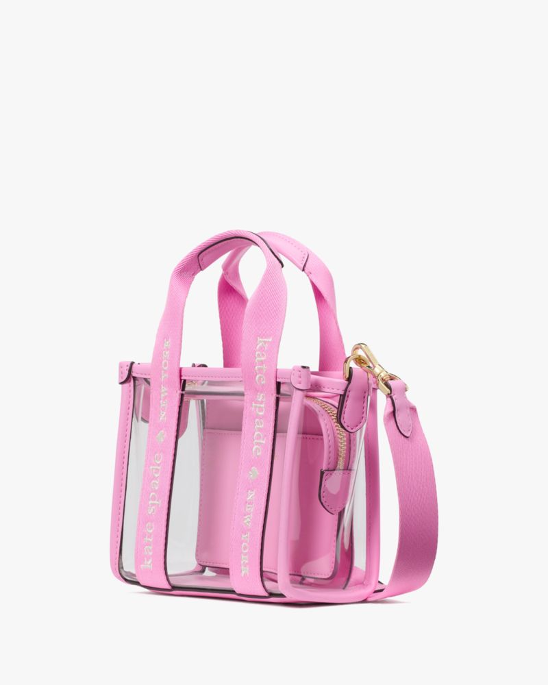 Really cute and well made. Would work great for sports/arena events that require a clear bag now, or the beach. Easy to dress up or down, and I love this shade of bright pink!