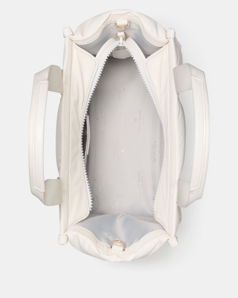 The Kip tote shifts from travel days to quick errands without missing a beat. Its zip closure keeps essentials secure, while a removable crossbody strap lets you carry it your way—on your shoulder, across your body or tin your hand. Quilted puffy fabric adds texture and a fresh, playful finish.