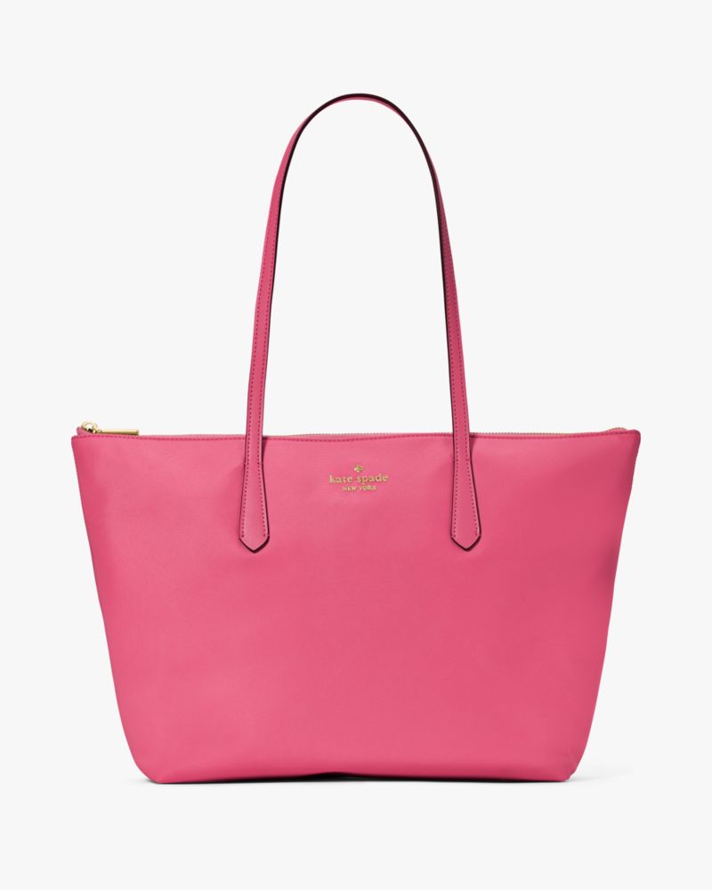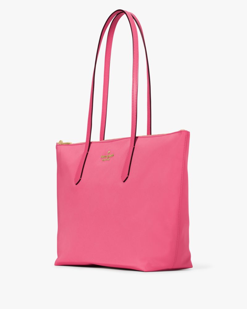 Kate Spade,Kitt Ksnyl Tote Bag,Nylon,Tote,PVC,Word Embellishment,Logo,Lined,Work,Pink