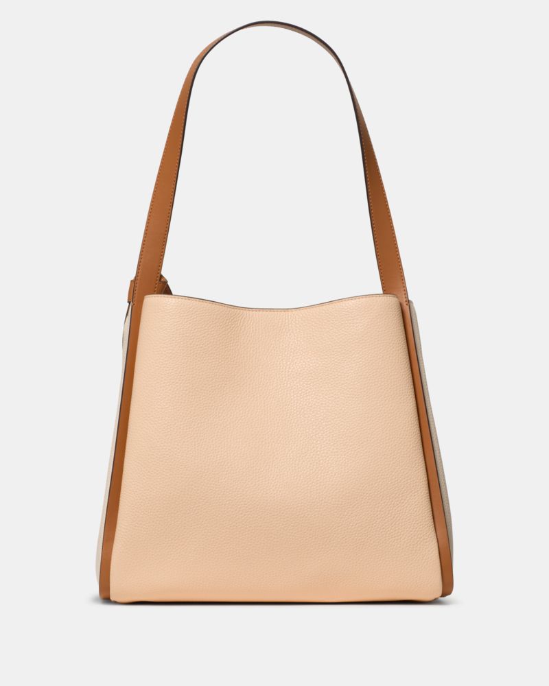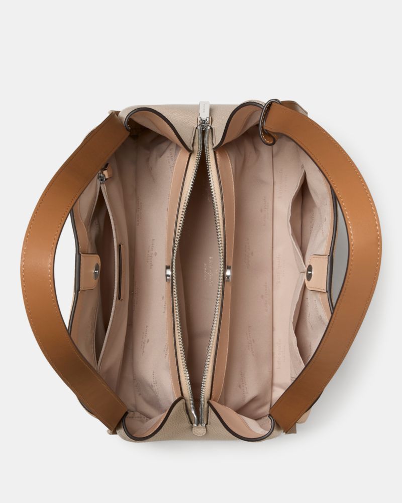 Kate Spade,Knott Colorblock Large Carryall,Lambskin,Leather,Bucket,Plastic,Piping,Knot,Lined,Gold Metal,Casual,Beige