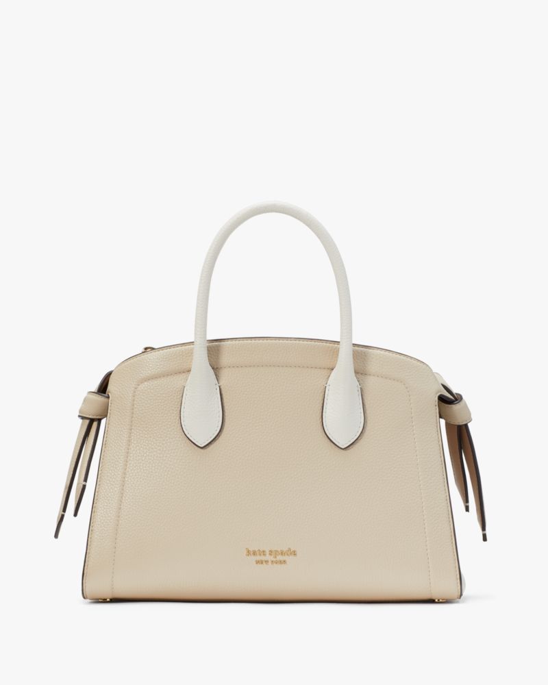 Kate Spade,Knott Colorblocked Medium Zip-top Satchel,Leather,Satchel,Logo,Adjustable,Work,Day Party,Beige
