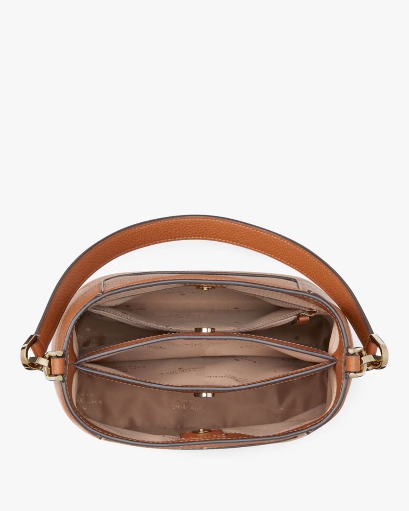 I love this bag and I am so glad I ordered it I have never ordered from Kate Spade before even though I have heard many good things about her products. I have been looking for the right size back for months now and could never find the right one they were either too big or too small or didn't have the 3 inside compartments that I always seem to need for my purses. When I saw this one I was like Hmmmm well it does seem to check all the things I am looking for in a purse so I thought go ahead and order it! When I was delivered I was all excited and praying please let this be the one so my search can be over with!!! Well let me tell ya it certainly was the one it is perfect in every way!! It's the perfect size has the right amount of room for all my stuff the drop handle is perfect also I can carry the bag or flip it onto my shoulder which ever way I want to carry it. The craftsman ship of the bag is wonderful I love how the bag stands on it's on and doesn't fall into itself.