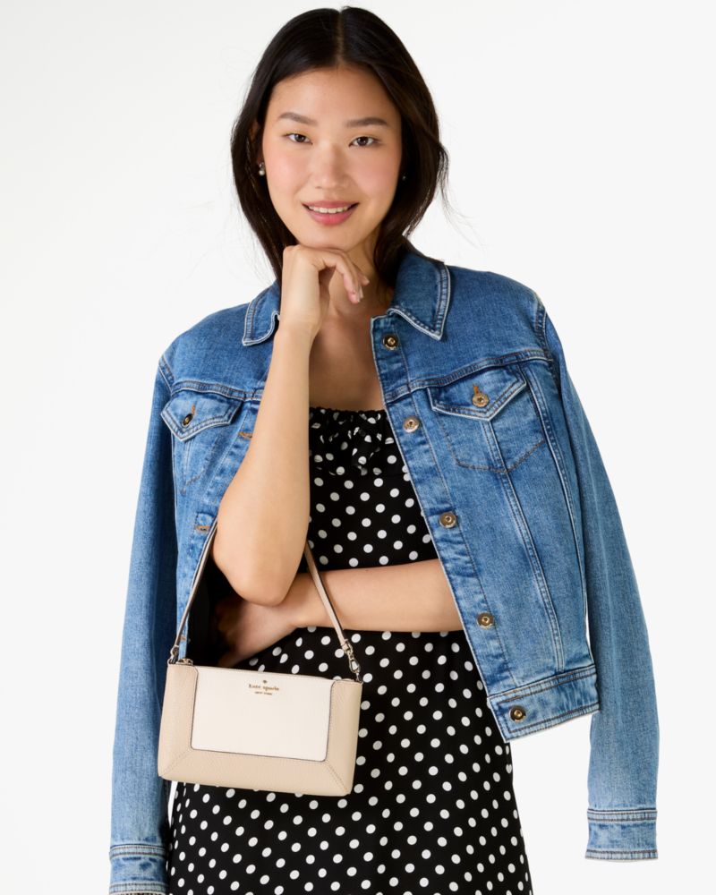 Kate Spade,Lena Colorblock Convertible Wristlet,Pouch,Wristlet,Metal Material,Metal,Color Block,Logo,Casual,Cream
