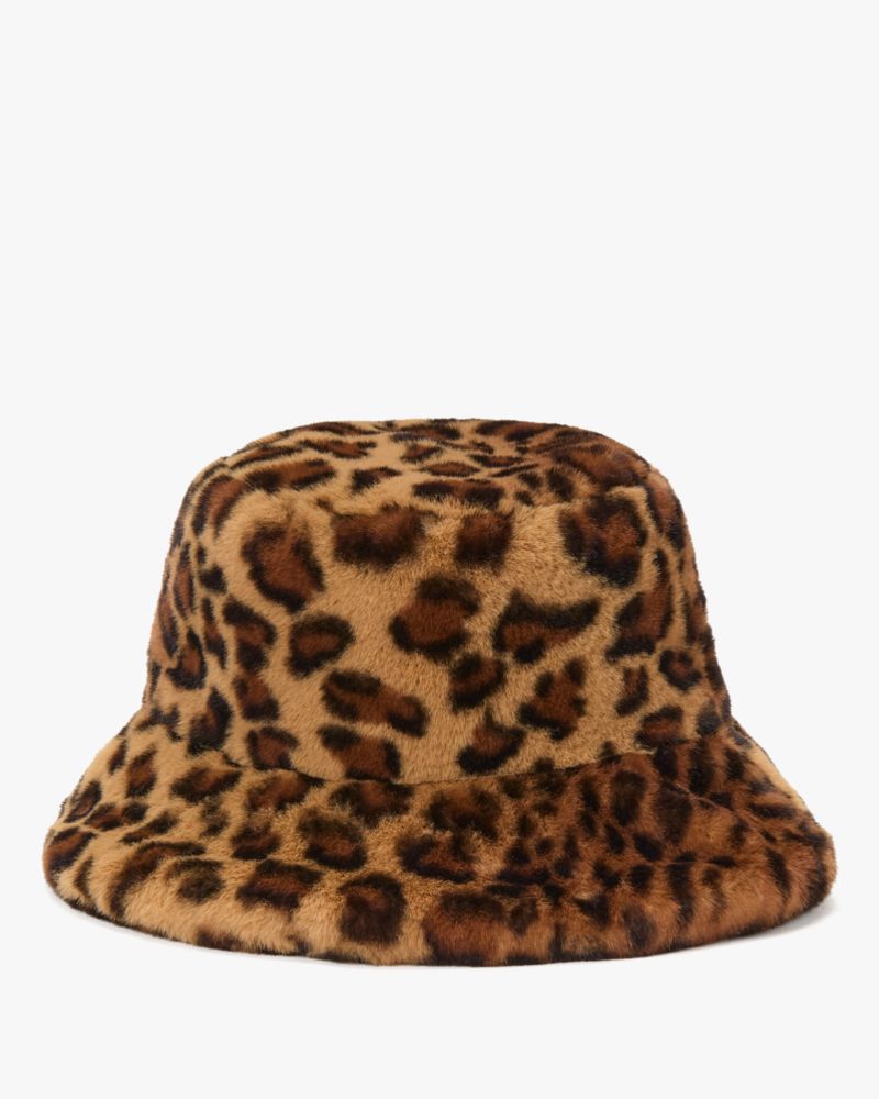 Made from fluffy faux fur, this leopard-spotted bucket hat makes a fabulous addition to your cold weather wardrobe.