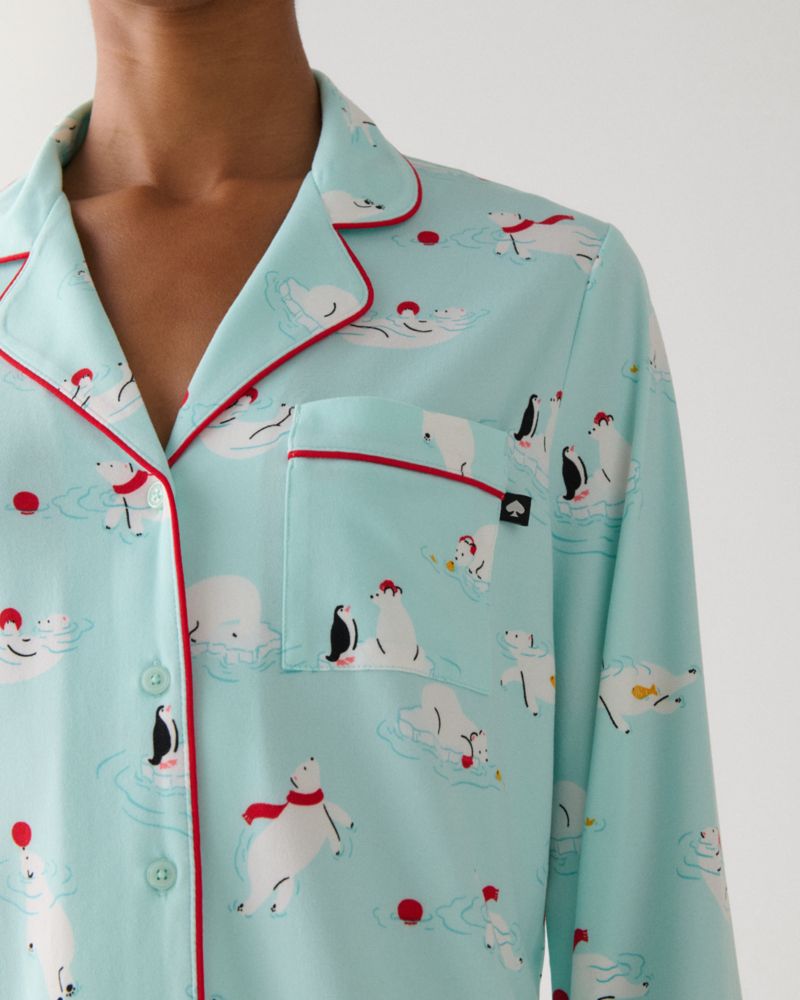 Kate Spade,Long Pajama,Spandex,Recycled Polyester,Polyester,Button Down,Straight,Wide Leg,Piping,Drawstring,Sustainable,Qu...,Mint