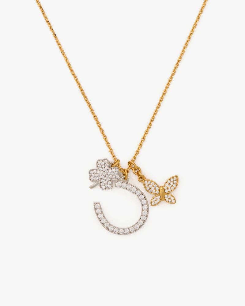 Kate Spade,Lucky Charm Statement Pendant,Single Strand,Cubic Zirconia,Metal Material,Gem Embellishment,Novelty Embellishme...,Clear