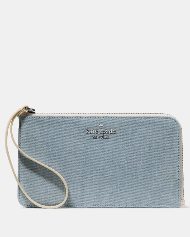 Kate Spade,Lucy Wristlet,Leather,Wristlet,Pouch,Metal,Logo,Silver Metal,Casual,Blue