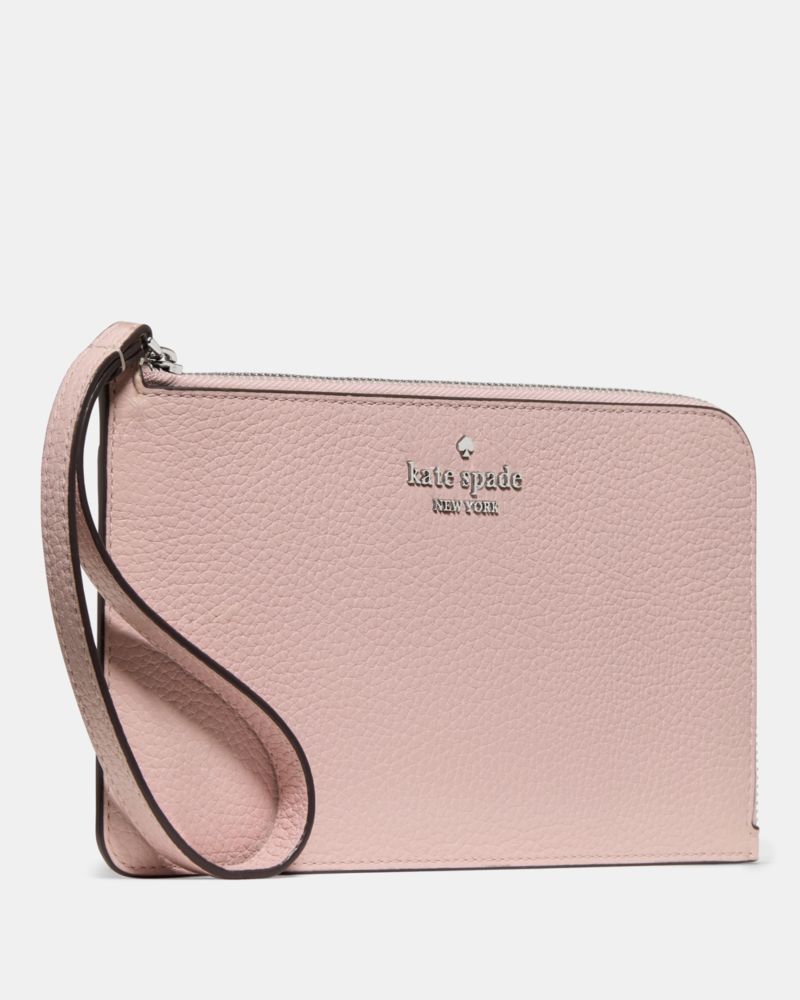 Kate Spade,Lucy Wristlet,Leather,Wristlet,Pouch,Metal,Logo,Silver Metal,Casual,Pink