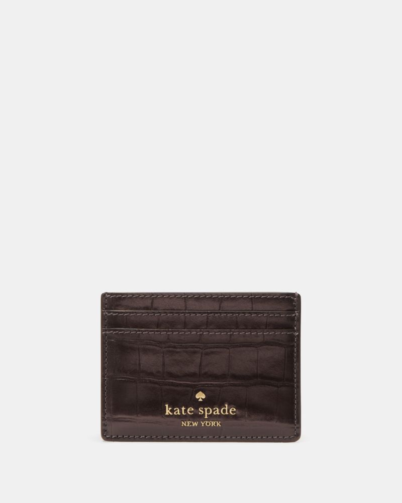 Kate Spade,Madison Croc Embossed Small Slim Card Holder,Brown