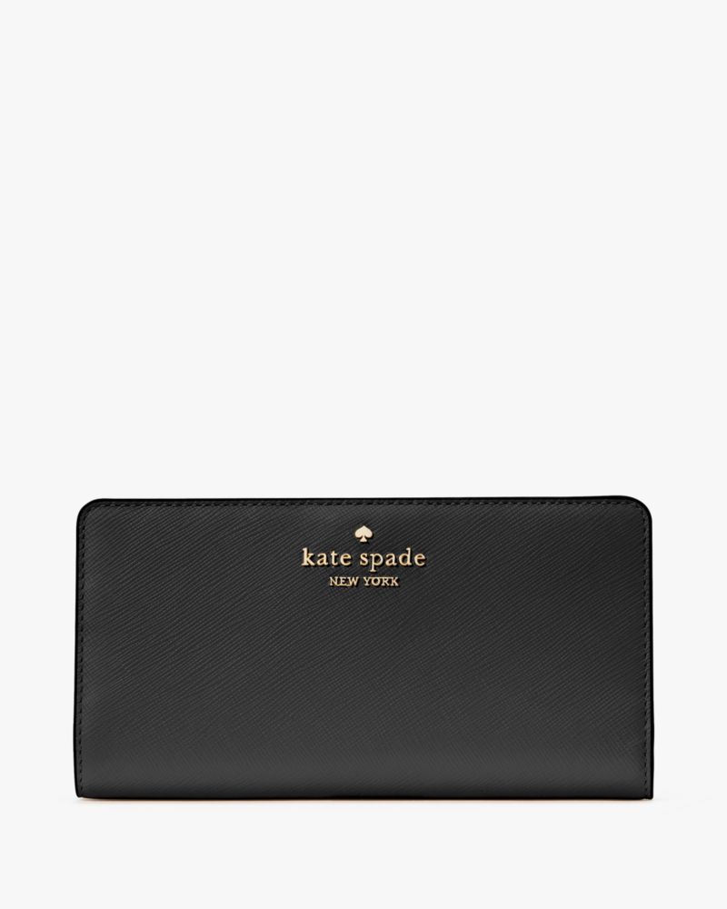 Not only does this large wallet have multiple card slots, billfold compartments and zip pockets at the interior, it has a very pretty exterior. In this case, we think more is more.