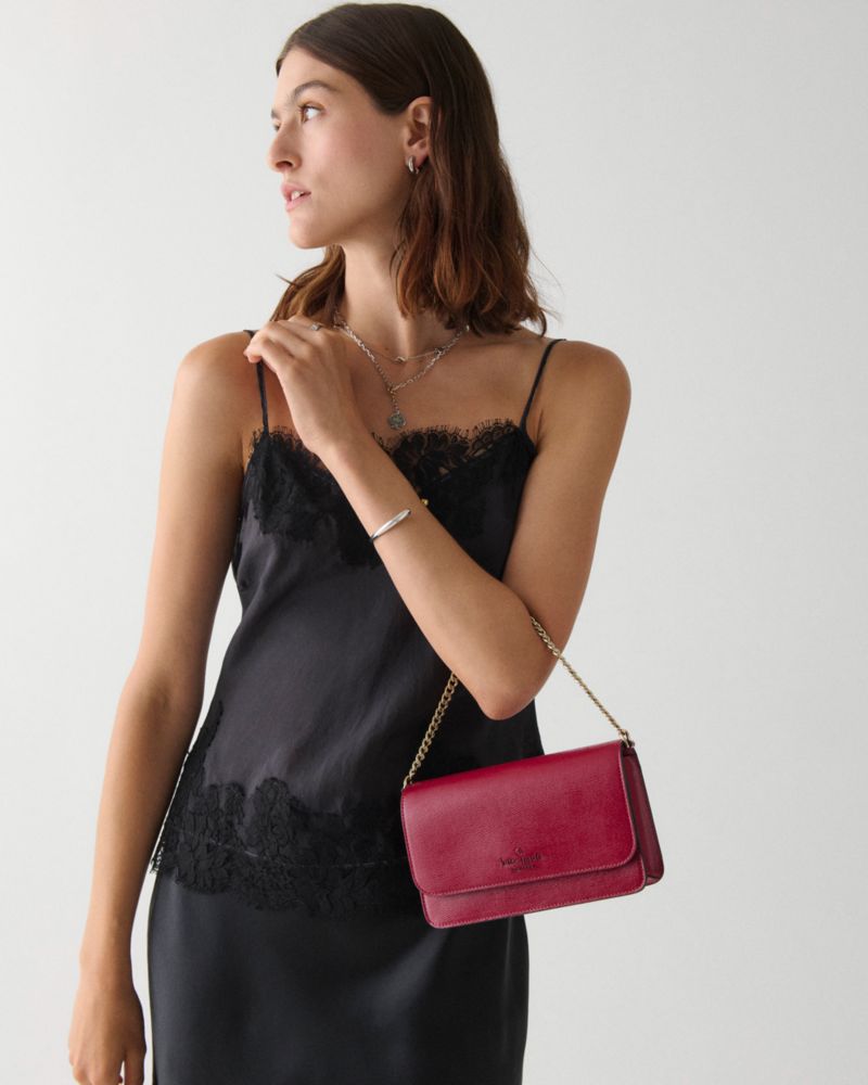 Kate Spade,Madison Willow Mini Flap Crossbody,Leather,Crossbody,Gusset,Gold Metal,Day Party,Maroon