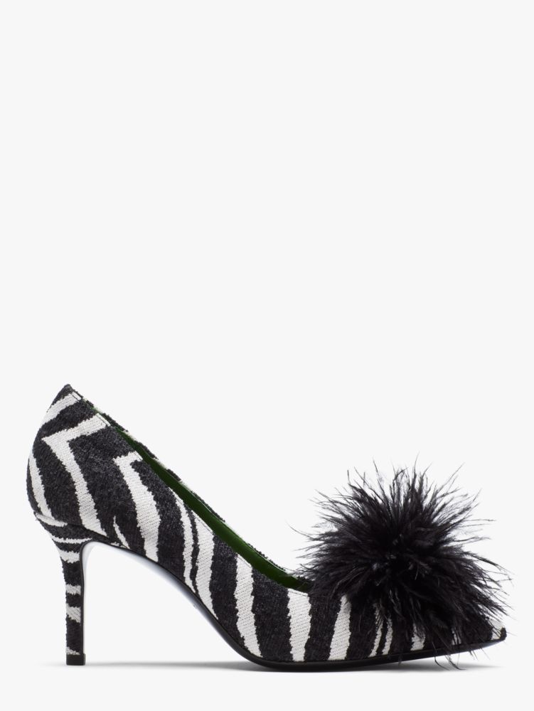 - Zebra jacquard with feather trim