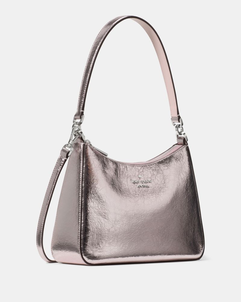The Margot Crinkle Metallic Convertible Shoulder Bag brings a flash of shine to your daily rotation. Its crinkled finish catches the light just right, making it perfect for golden hour and beyond. A metallic handbag that’s equal parts playful and polished.