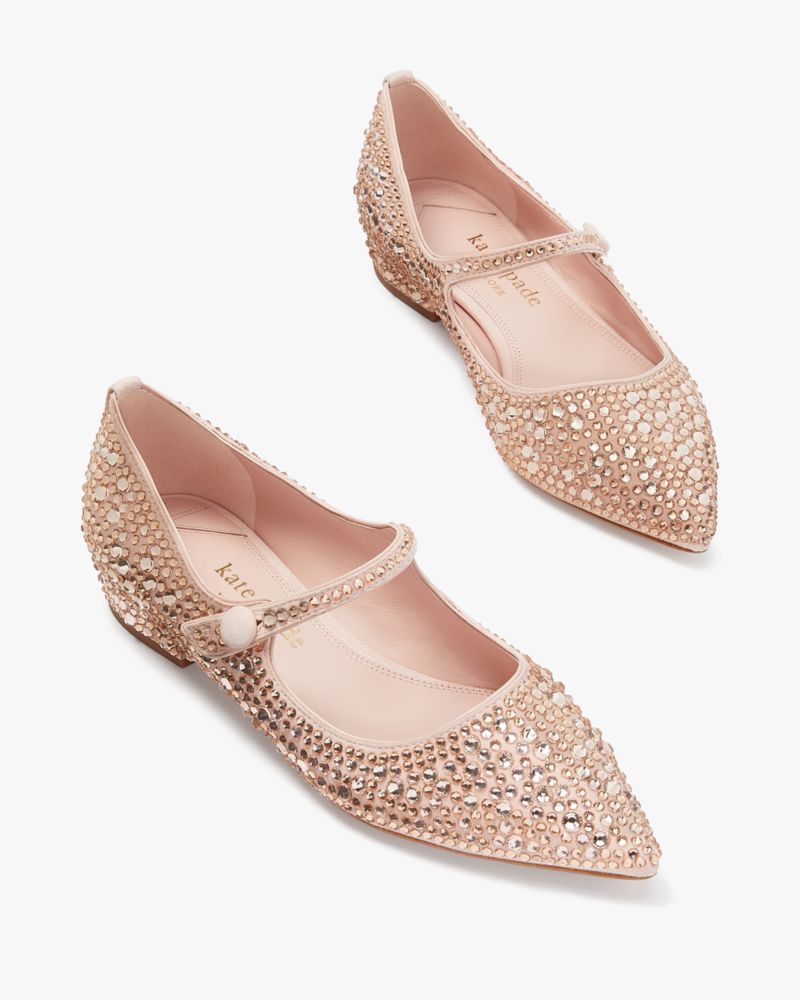 Beautiful shoe in every way possible. They are comfortable, true to size (I’m 8.5-9 and bought the 9s), and include plenty of room in the toe box. . There is plenty of room with strap. It barely touches the top of my foot. The pink is perfect, blush, and the sparkles make them fun, a little glam, and a touch fancy. I bought these in the pink and the sparkle red. Kate Spade includes replacement sparkles if you happen to lose any, but I haven’t yet. I like wearing them with a pair jeans but they could definitely serve you well for special occasions. They are to die for. Treat yourself at these clearance prices.