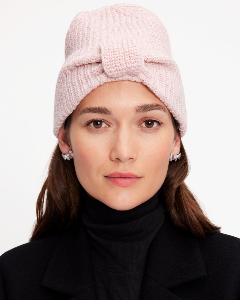 When the temperature drops, this bow-cuff beanie knit with a little shimmer will keep you toasty (and on trend).
