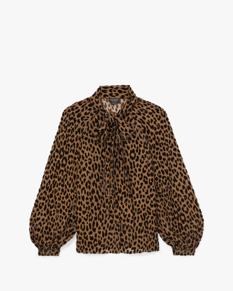 Roar! Channel your wild side with this airy tie-neck shirt in our new Modern Leopard print.