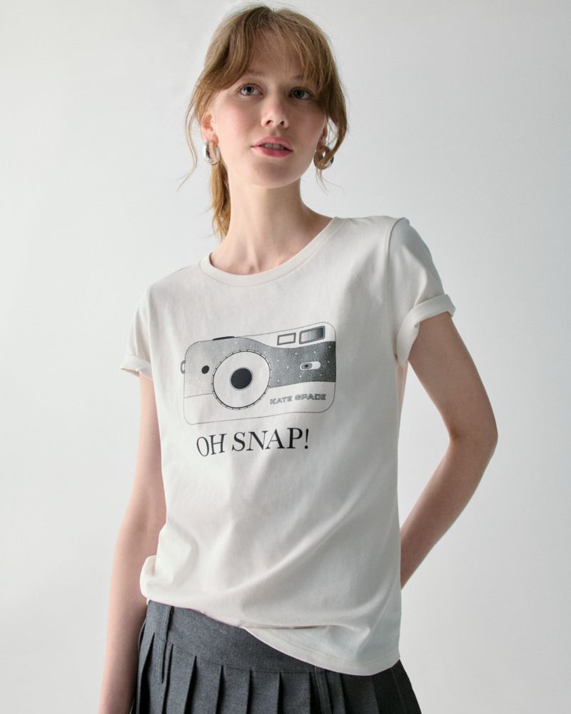 Kate Spade,Oh Snap Tee,Cotton,T Shirt,Casual,White