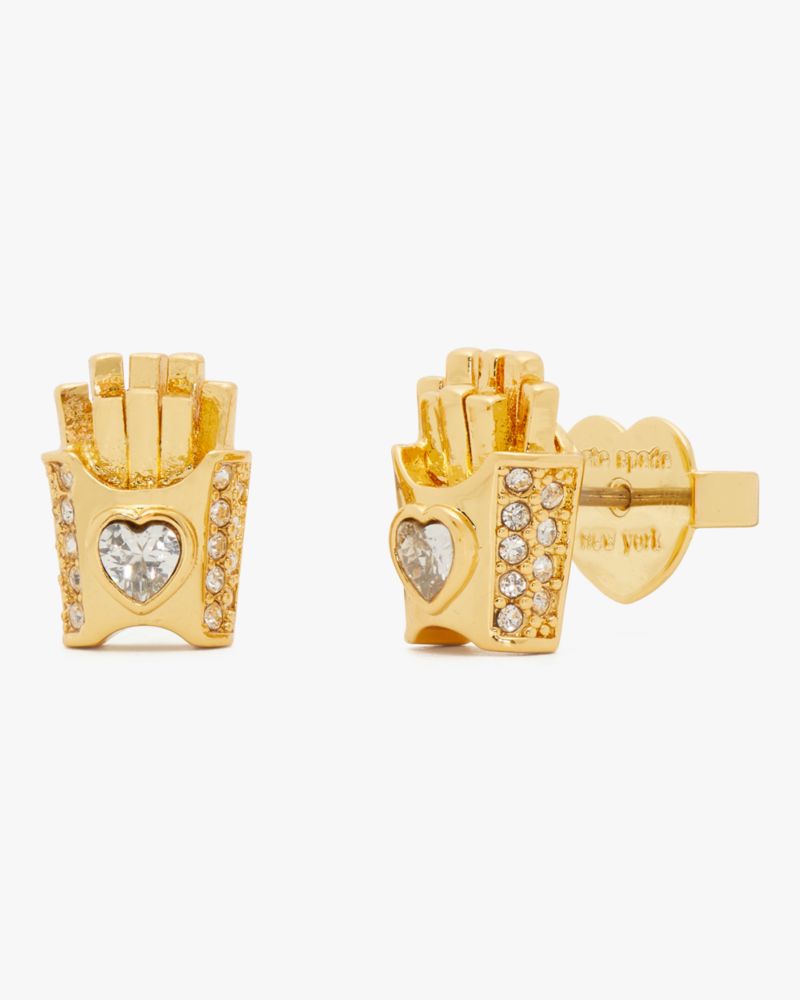 Topped with crystal-embellished french fries, these stud earrings are the chicest way to get your snack fix.